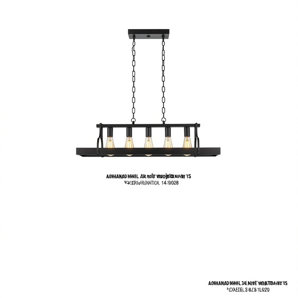 Lampadario Industriale a Sospensione in Ferro Nero Opaco da 34 Pollici con 5 Attacchi E26, Altezza Regolabile, Stile Moderno Farmhouse