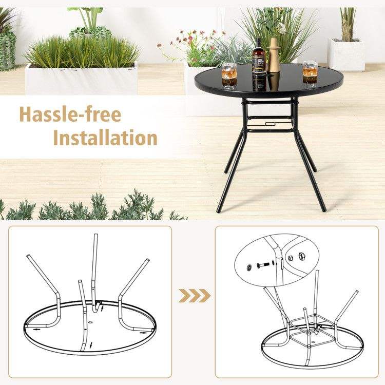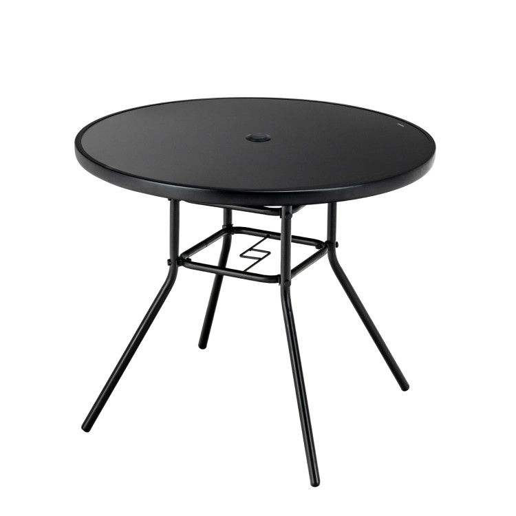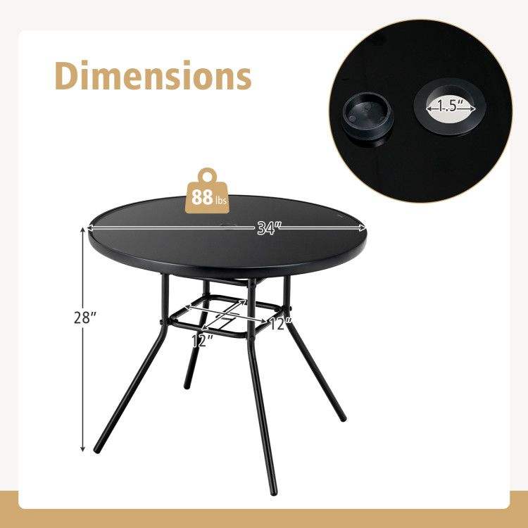 Tavolo da Pranzo da Esterno da 34 Pollici con Foro per Ombrellone da 1,5 Pollici per Uso in Giardino