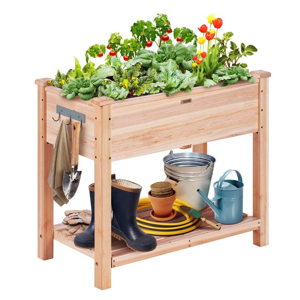 Fioriera Rialzata in Legno 34 X 18 X 30 Pollici per Giardino, Vaso da Esterno per Coltivare Fiori e Verdure