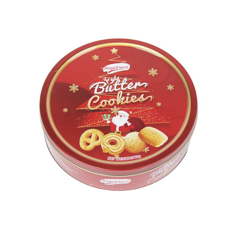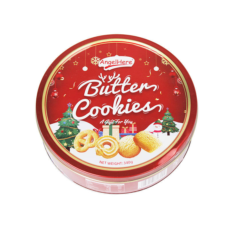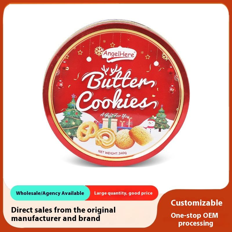 Biscotti Natalizi 340g, Biscotti al Burro dal Gusto Dolce, Confezione Regalo Personalizzata, Scatola di Latta, Imballaggio per Esportazione, Tipo Wafer allo Zucchero