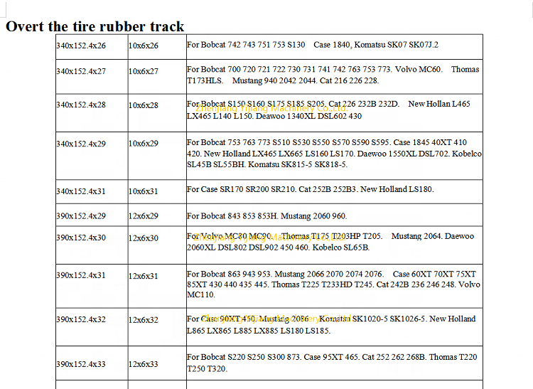 340x152.4 (10x6) 390x152.4(12x6) Over the Tire Track for Compact Skid Steer Rubber Tracks
