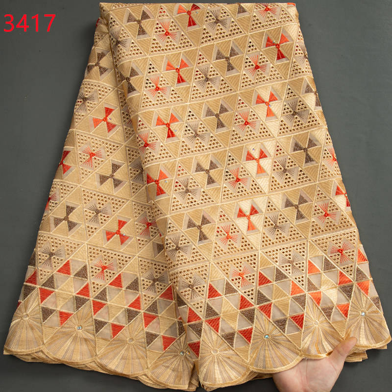 3417 High Quality Swiss Voile Lace 5Yards African Cotton Lace Fabric With Hole Dubai Style for Nigerian Garment Sewing