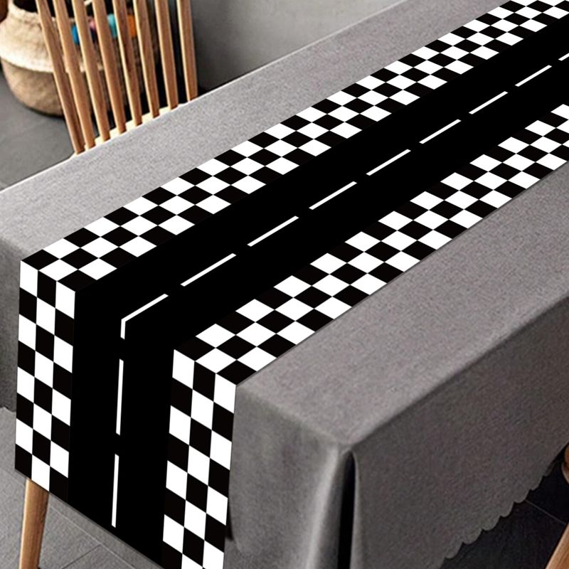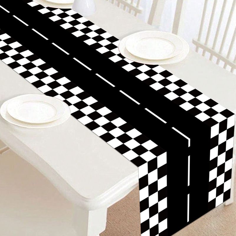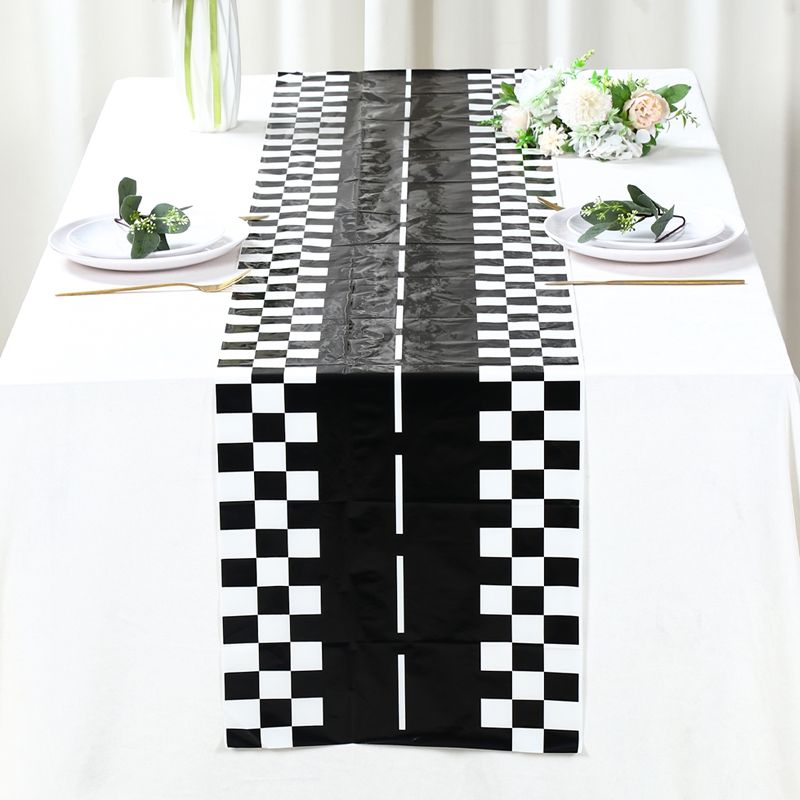 35*180cm Rectangular PE Plastic Racing Track Table Runner Black and White Racing Track Chic Table Runner Desktop Decoration