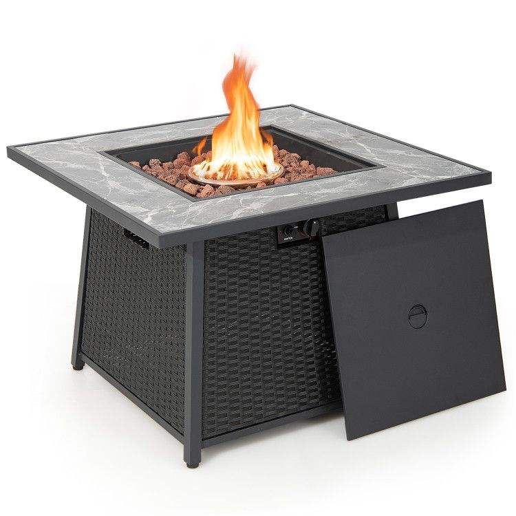 Tavolo con Braciere a Gas Propano da 35 Pollici con Rocce Laviche, Copertura in PVC e Rattan Intrecciato per Intrattenimento all'Aperto