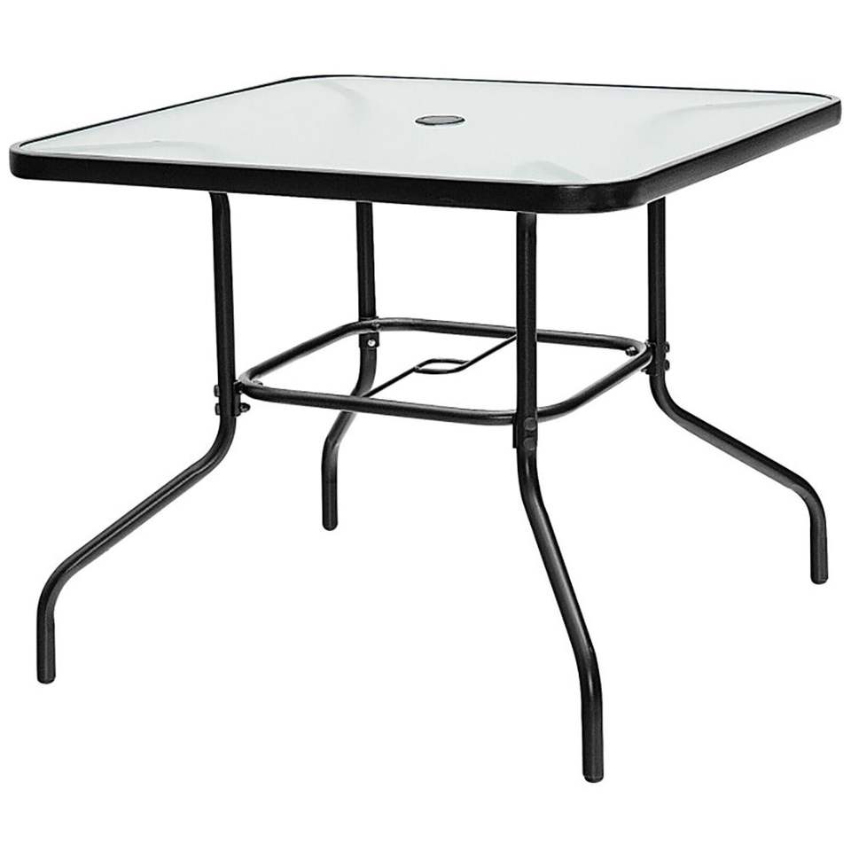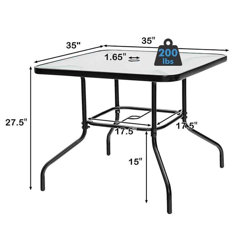 Tavolo da Pranzo Quadrato da Esterno da 35 Pollici con Foro per Ombrellone, Piano in Vetro Temperato, Elegante Arredo da Giardino