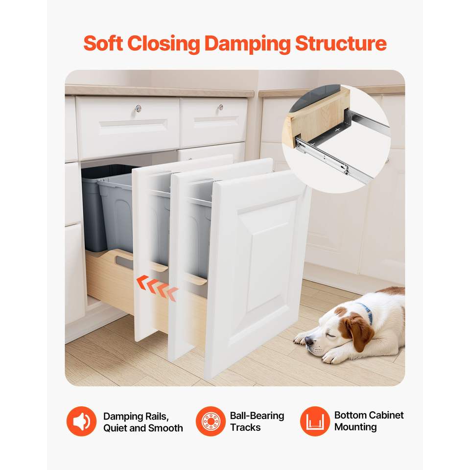 Cestino per rifiuti e riciclo estraibile in legno da 35 QT X2 con doppio lavello, per mobili da cucina, set da 2 pezzi, organizer per armadietto