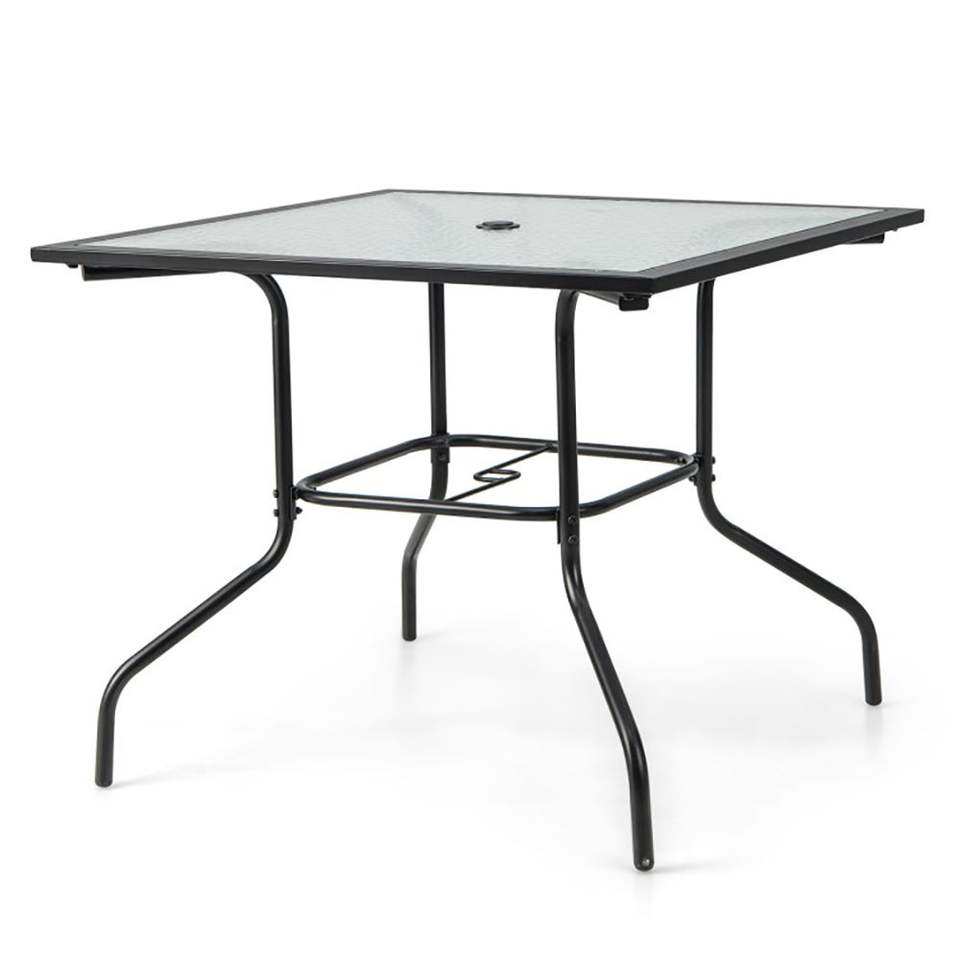 Tavolo da Pranzo per Esterni 35 x 35 Pollici con Foro per Ombrellone da 1,5 Pollici, Ombrellone Non Incluso