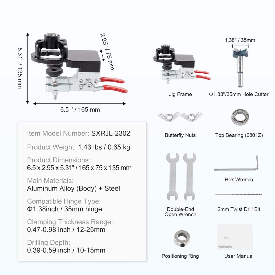 Punteruolo per Cerniere a Scomparsa da 35 mm con Doppia Morsetta di Fissaggio, Bloccaggio Preciso, in Lega di Alluminio, per Cerniere di Mobili e Armadi