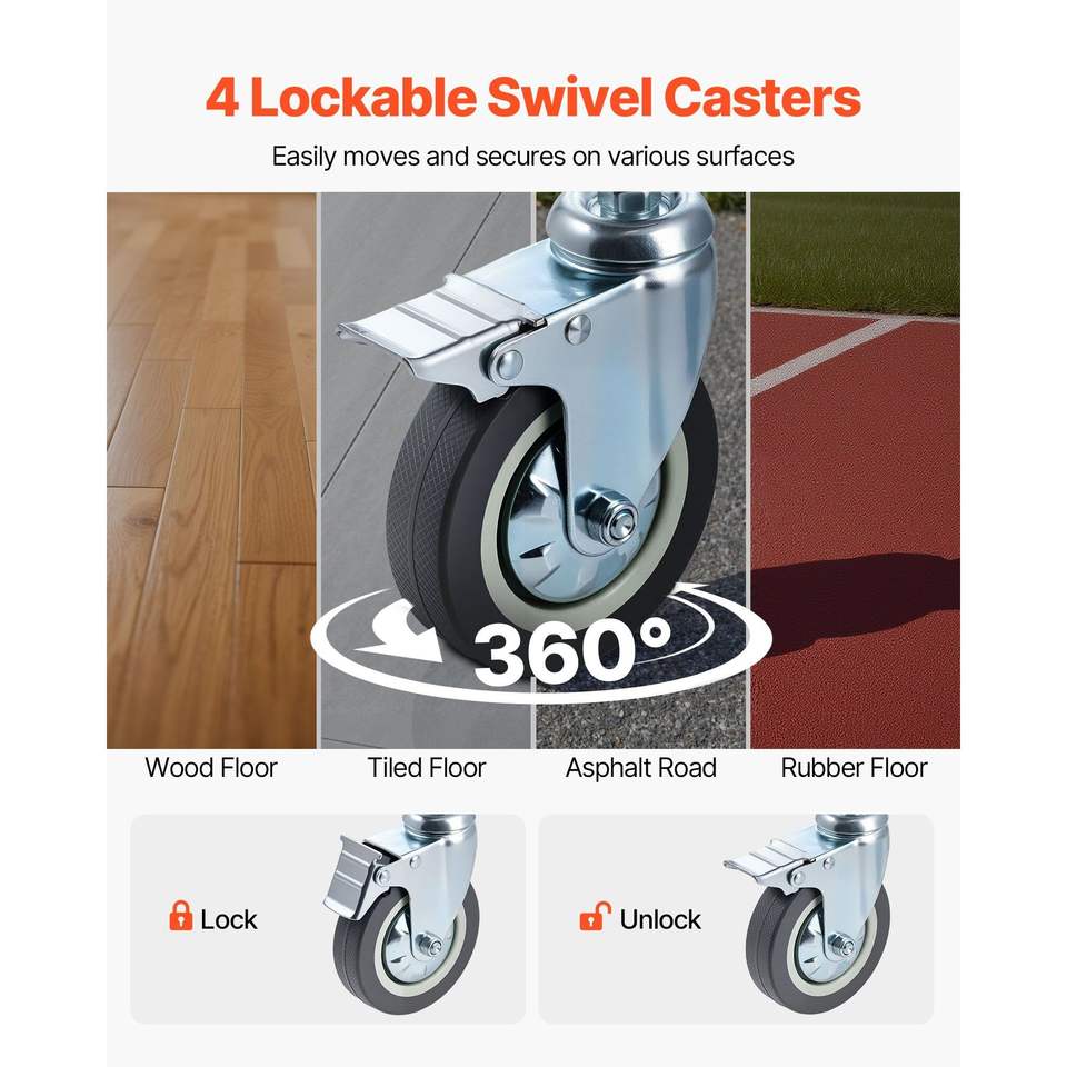 Sedia Comoda da Comodino 4-in-1 con Ruote, Capacità 159 kg, WC Portatile da Ospedale con Schienale Rialzato e Poggiapiedi