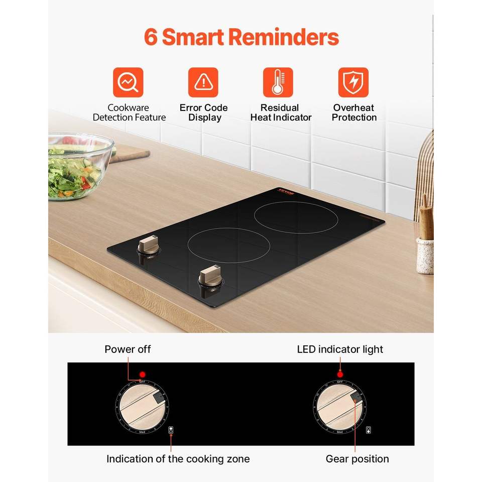 Piano Cottura a Induzione Elettrico da Incasso 3500W con 2 Controlli a Manopola e 12 Impostazioni di Temperatura, Piano Cottura a Induzione a 2 Fuochi