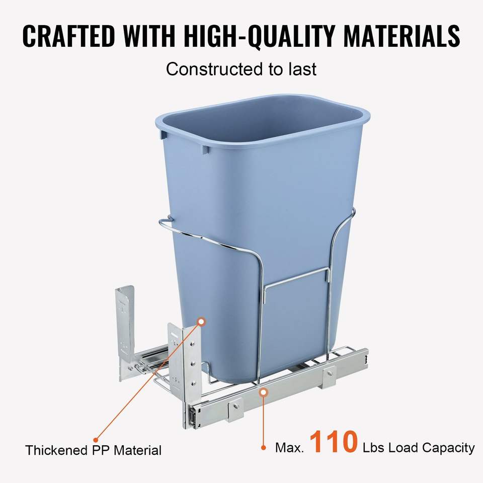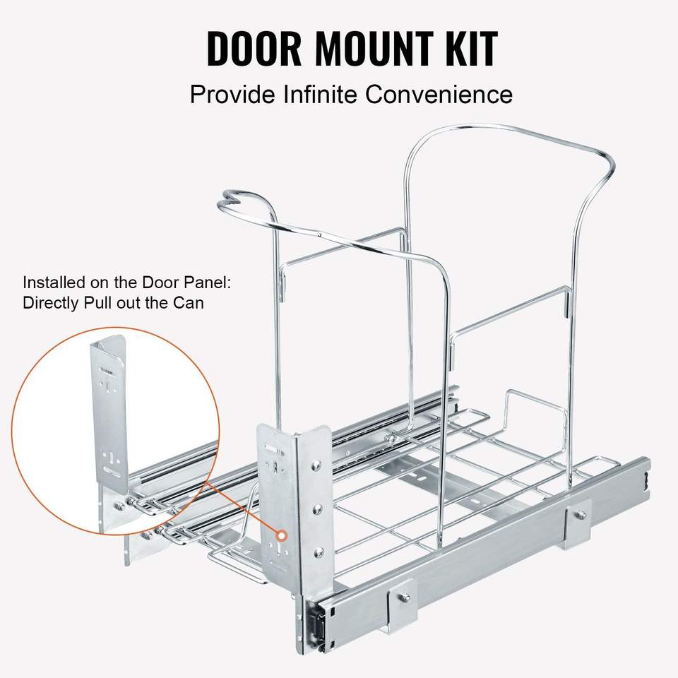 Contenitore per Rifiuti Estraibile da 35L con Maniglia Scorrevole, Kit di Montaggio a Porta, Capacità 110 Libbre, Organizzatore per Cassetti