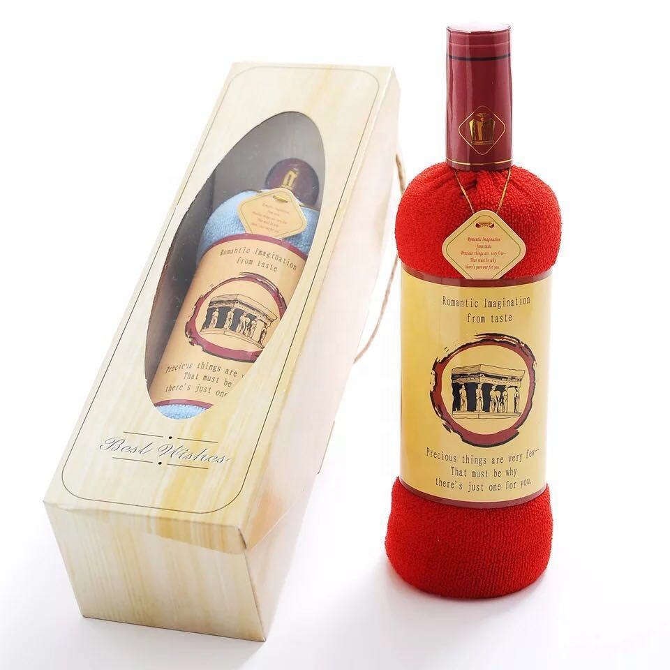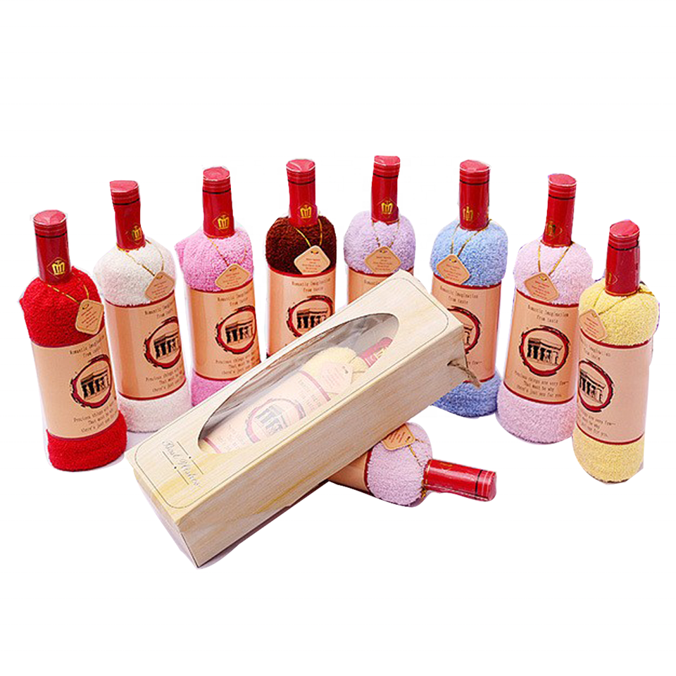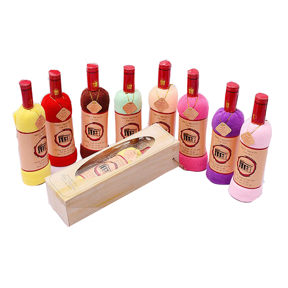 Asciugamano per torta a forma di bottiglia di vino in fibra di cotone 35x75cm in scatola di carta per asciugamani regalo a forma di festa