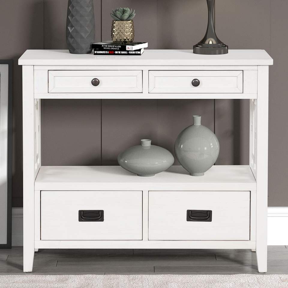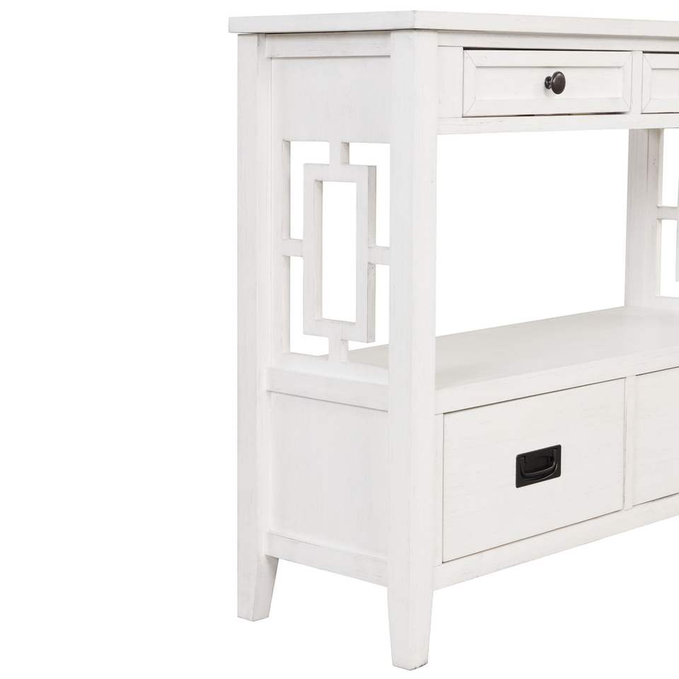 36'' Antique White Farmhouse Pine Wood Console Table with 4 Drawers 1 Storage Shelf for Entry Sofa Living Room Bedroom Kitchen
