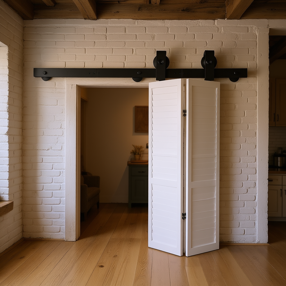 Barn Door Hardware Track Kit 36 Inch For Two 16 Inch Doors Foldable Interior Farmhouse Style Carbon Steel