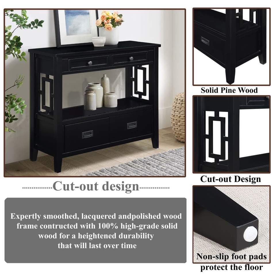 36'' Black Farmhouse Pine Wood Console Table with 4 Drawers 1 Storage Shelf for Entry Sofa Living Room Bedroom Kitchen Hallway