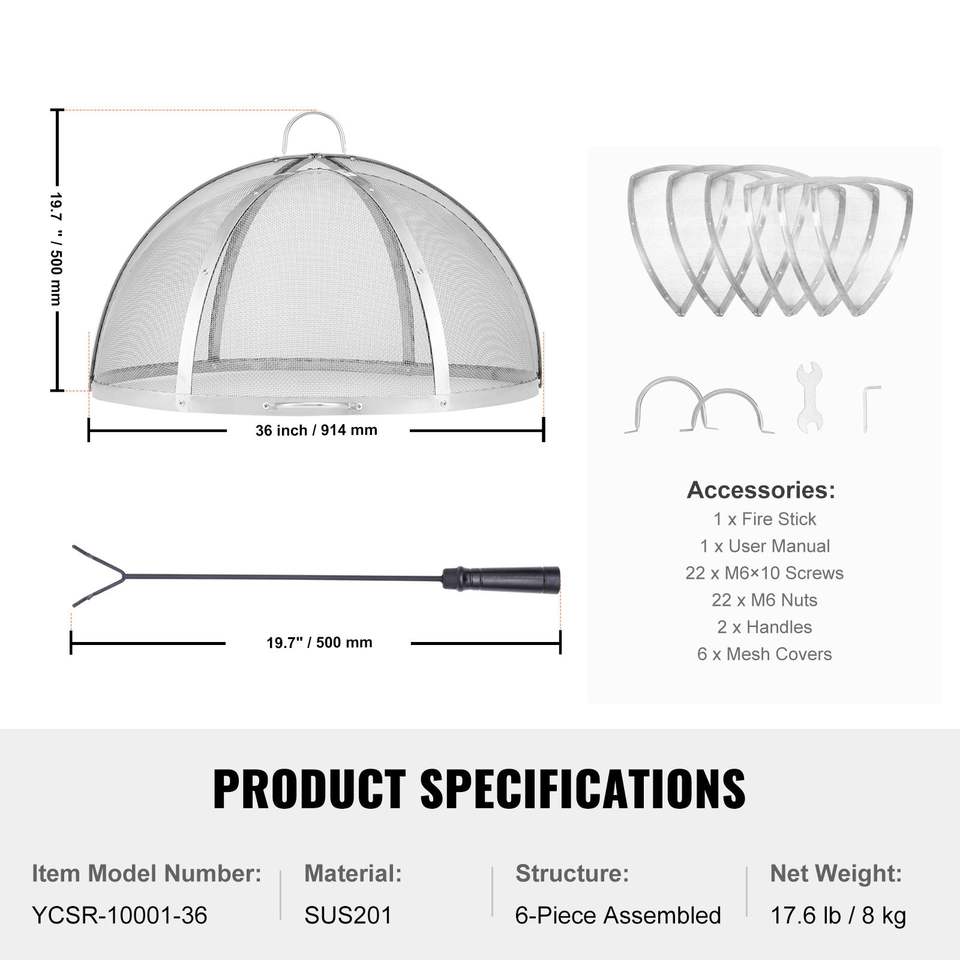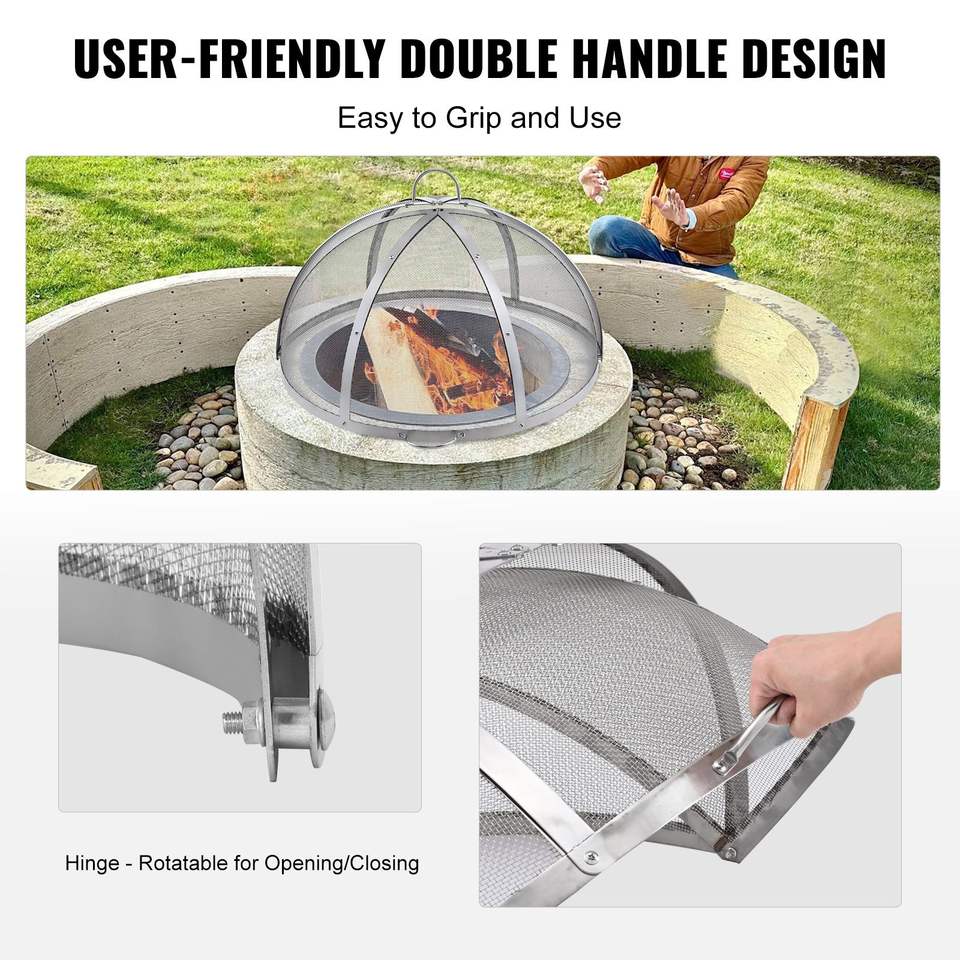 Copertura per Braciere da Esterno in Acciaio Inox, Diametro 36 Pollici, Facile da Aprire, con Schermo Antifiamma