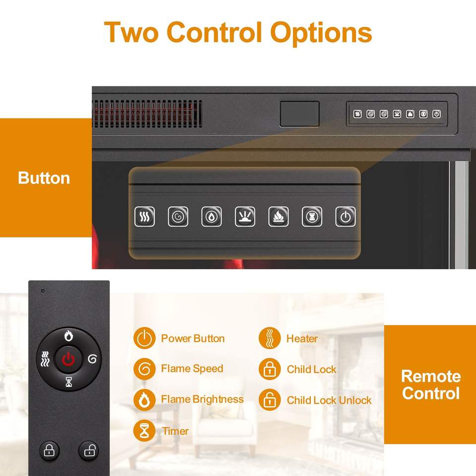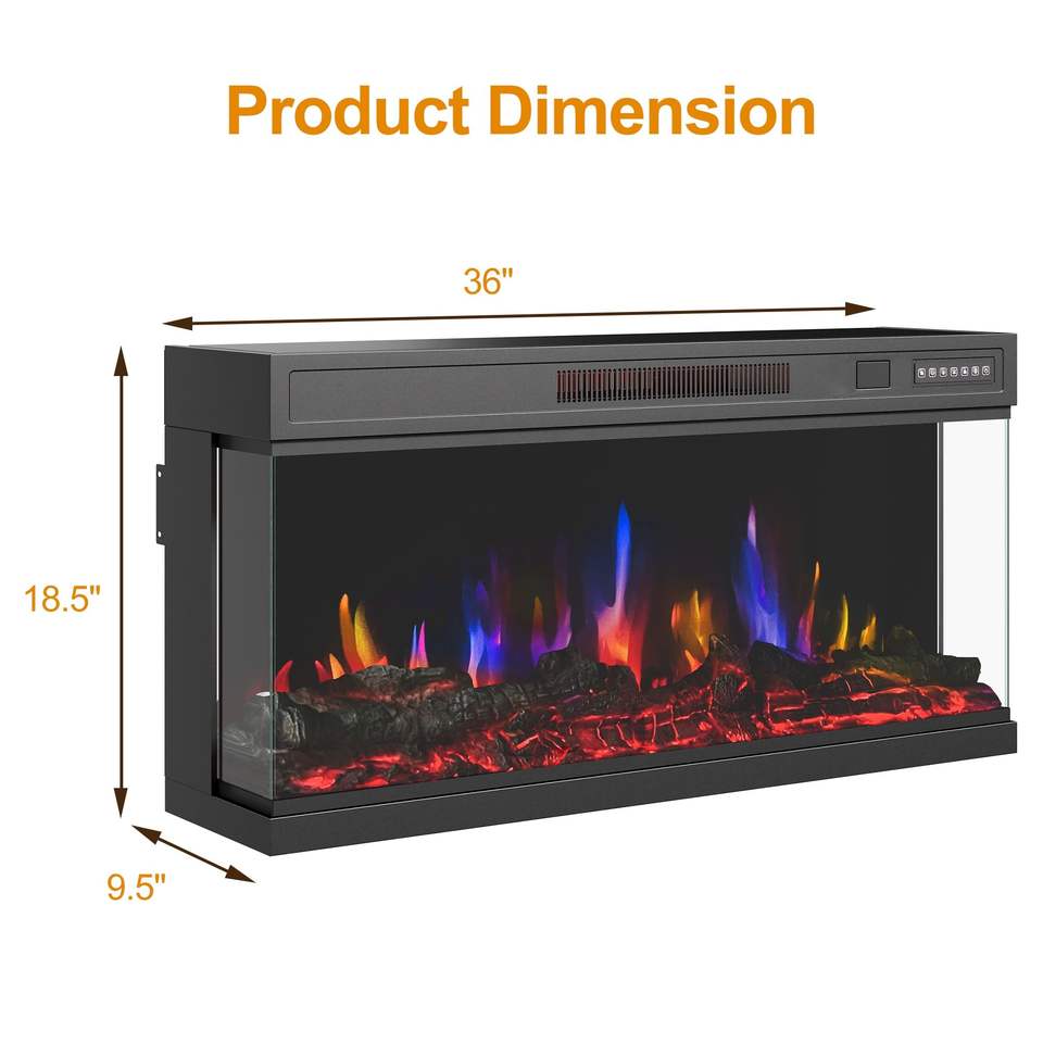 Inserto per Caminetto Elettrico da 36 Pollici con Riscaldatore Incassato da 1500W, Telecomando, 7 Colori di Fiamma Regolabili, Bassa Rumorosità