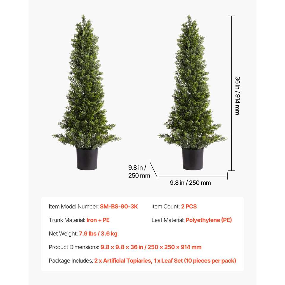 Alberi di Cedro Artificiali da 36 Pollici Facili da Montare, Set di 2 Cespugli di Pino Finti dall'Aspetto Realistico in Seta per Decorazioni Frontali