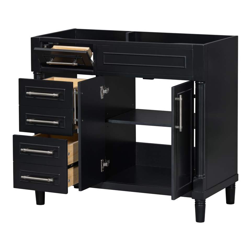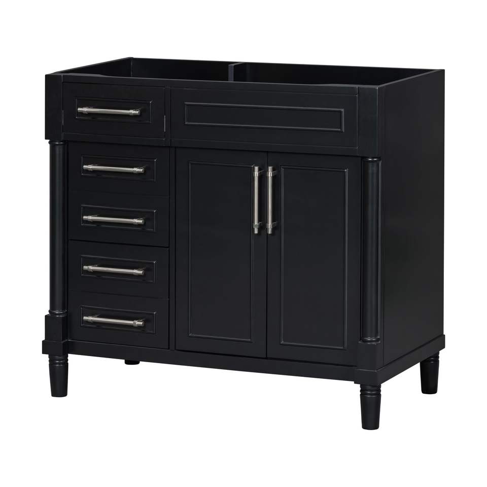 Mobile Bagno Nero da 36 Pollici Autoportante con Lavabo, Struttura in Legno Massello, Armadietto Contenitore con 2 Cassetti e Cassetto a Ribalta