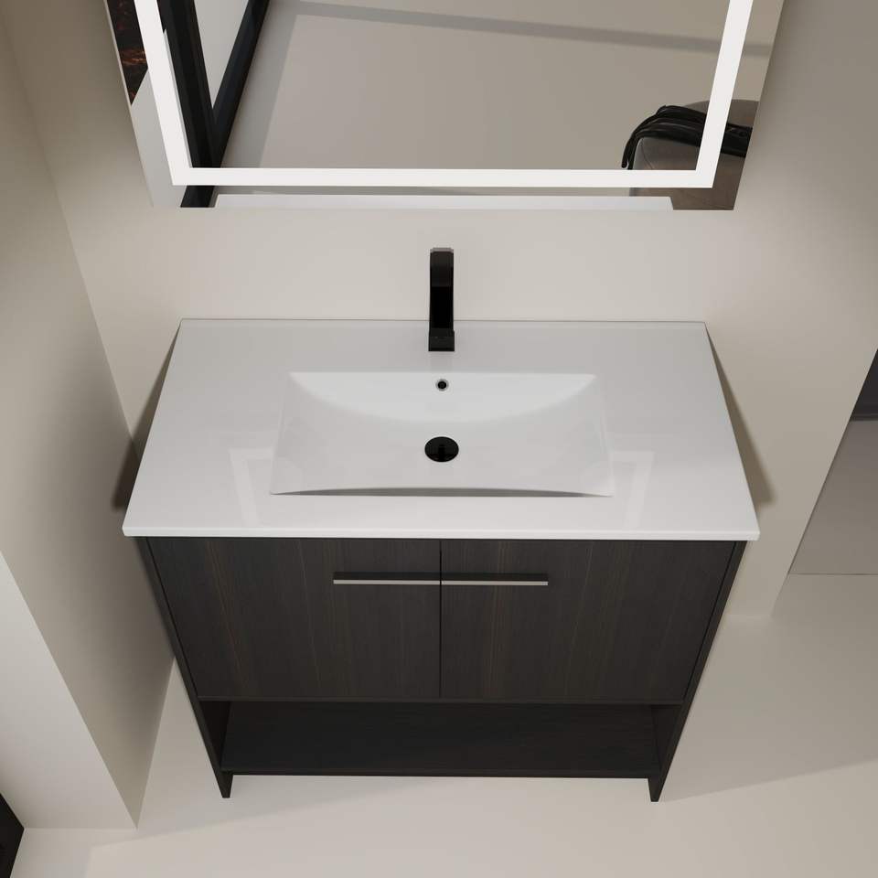 Lavanderia da bagno indipendente da 36 pollici con 2 porte a chiusura morbida mobile in compensato lavello in ceramica-lavabo da bagno