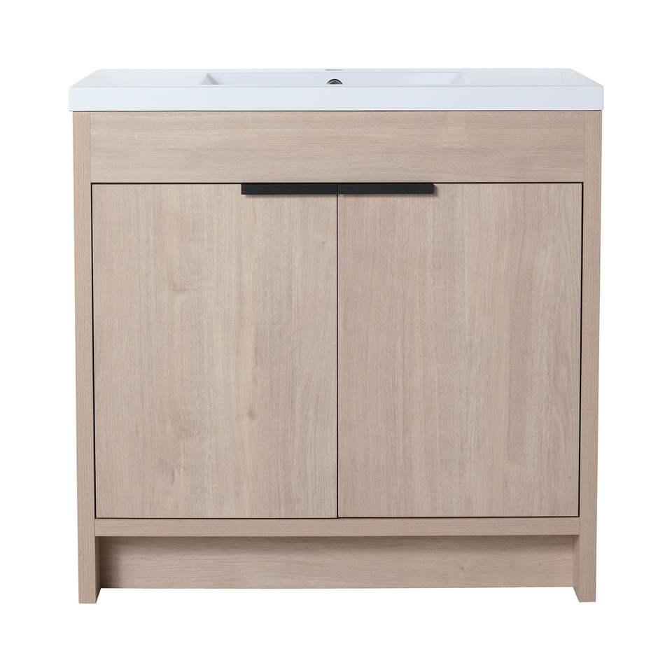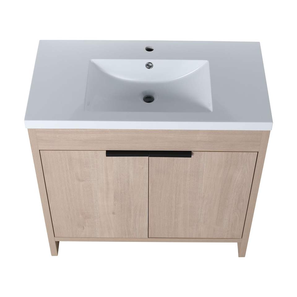 Mobile Bagno Freestanding da 36 Pollici con Lavabo in Resina Bianca e 2 Ante con Chiusura Ammortizzata (BVB02436PLO GRB3640)