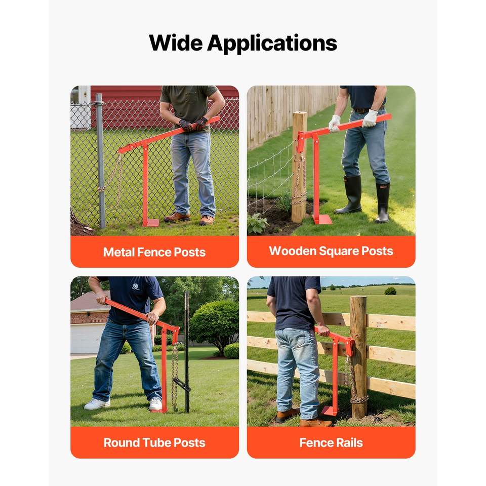 Estrattore per Pali a T da 36 Pollici per Recinzioni, Strumento per Rimozione Pali con Catena di Sollevamento da 47 Pollici, Verricello Salva-Lavoro