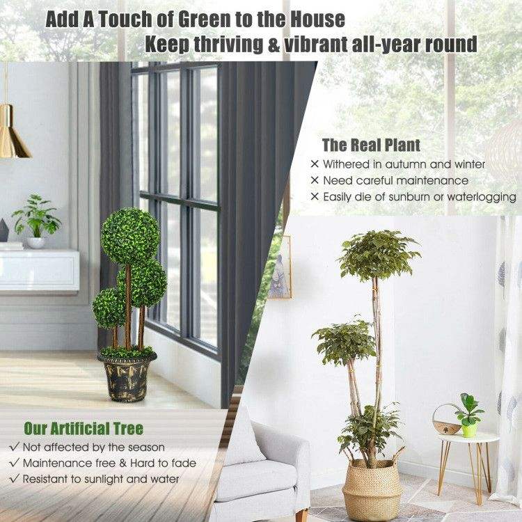 Albero Topiario Artificiale a Tre Sfere da 36 Pollici per Interni ed Esterni