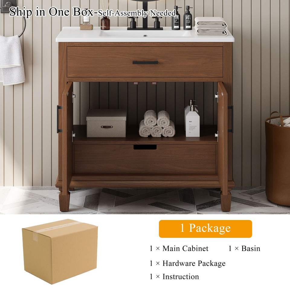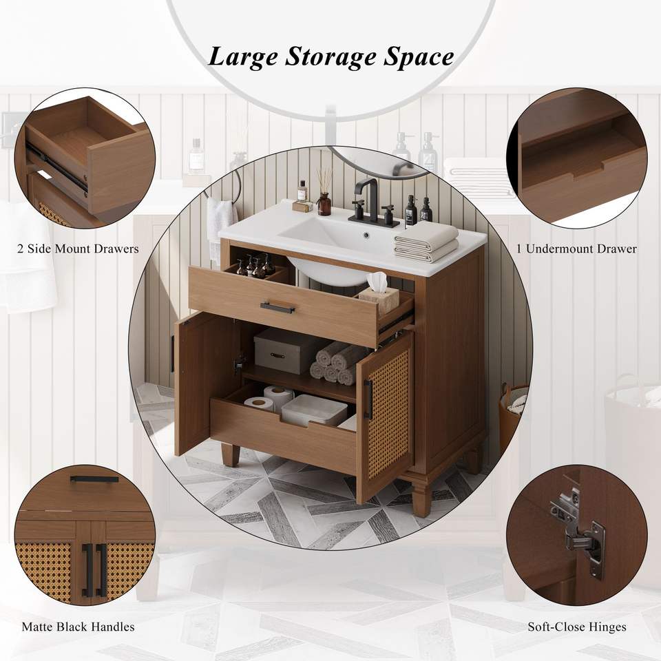 36 pollici moderno bagno Vanity Rattan Design in legno massiccio gambe grande spazio contenitore Free-Standing lavello in ceramica chiusura morbida