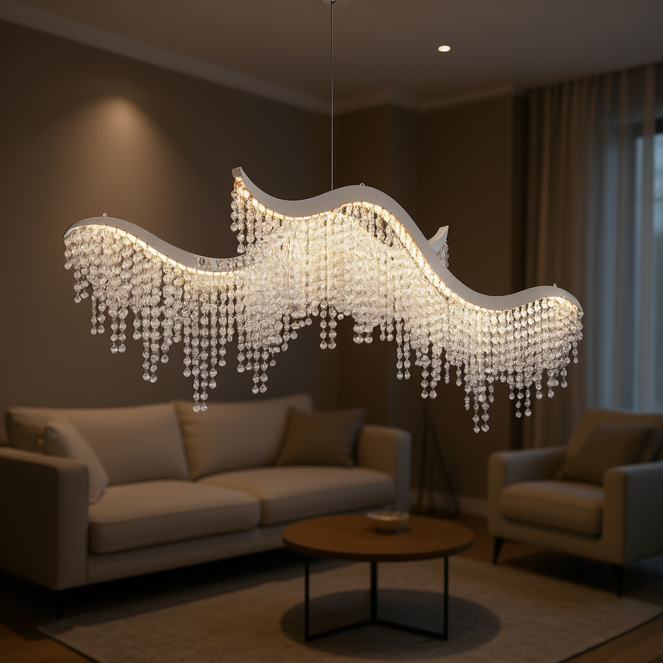Lampadario Moderno a LED con Cristalli, 36 Pollici, Temperatura Colore Regolabile, Lampada a Sospensione per Soggiorno, Finitura Cromata Oro