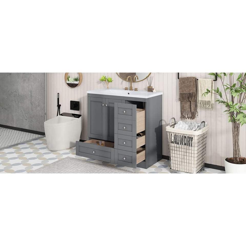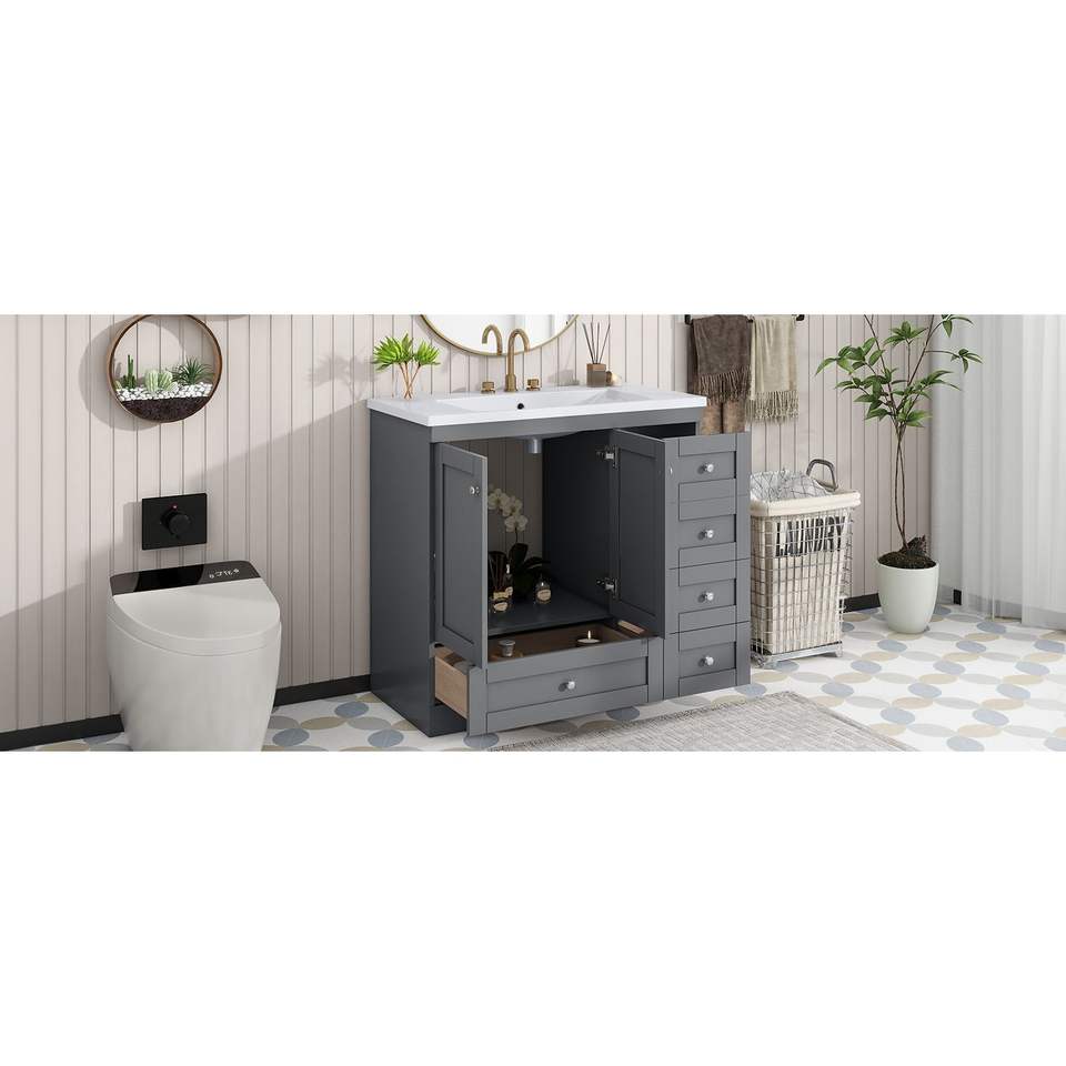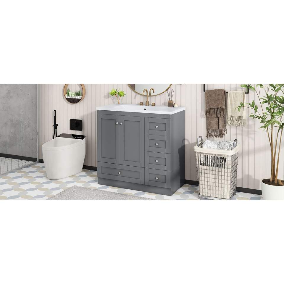 Mobile bagno autoportante stile Shaker da 36 pollici con lavabo, 4 cassetti e 2 ante con chiusura ammortizzata