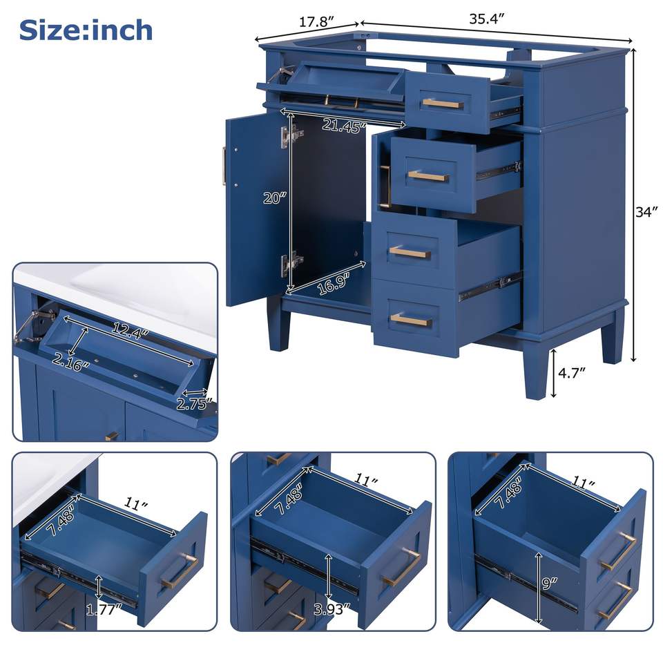 Mobile da Bagno Moderno da 36 Pollici Solo Mobile (Lavabo Non Incluso)