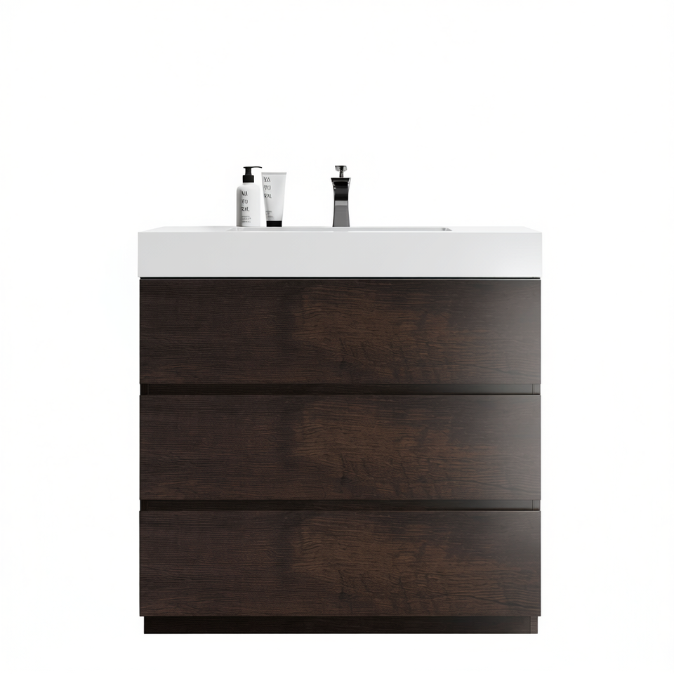 Mobile Bagno Moderno 36 Pollici Finitura Noce con Lavabo Integrato Bianco Design Autoportante Ampio Spazio Contenitivo