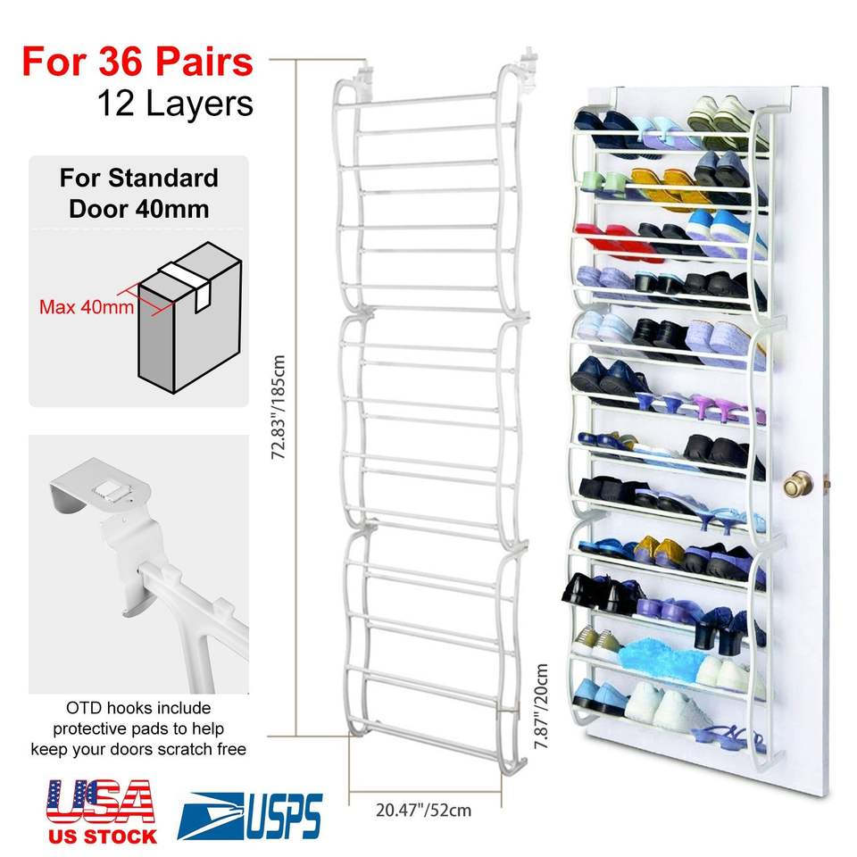 Scarpiera Bianca da Appendere Sopra la Porta, 36 Paia, 12 Livelli, Organizzatore per Scarpe da Appendere a Parete per Armadio