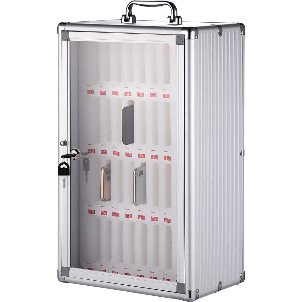 Armadietto Porta Telefoni in Lega di Alluminio Argento a 36 Scomparti con Maniglia Portatile e Serratura a Chiave, Design Personalizzabile
