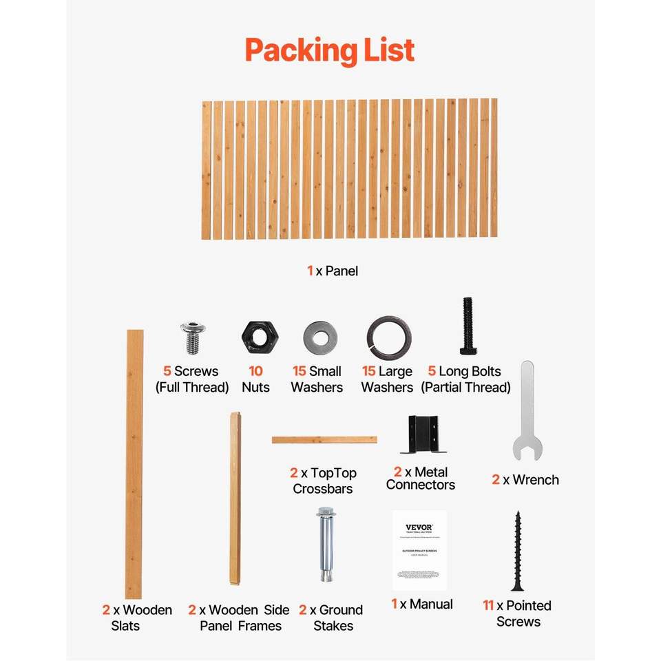 Pannello Divisorio in Legno da Esterno 91 cm L x 193 cm H, Schermo Privacy Autoportante per Arredo Patio
