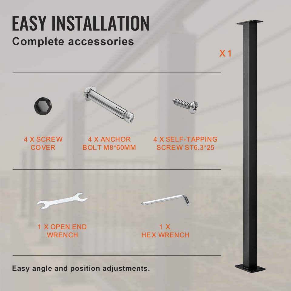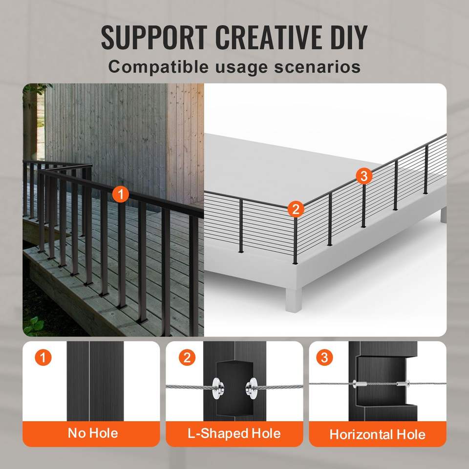 Palo per Ringhiera a Cavo 36 x 1.5 x 1.5 in Acciaio Inox Spazzolato, Componenti Fai-da-te per Ringhiere e Corrimano per Terrazze e Scale