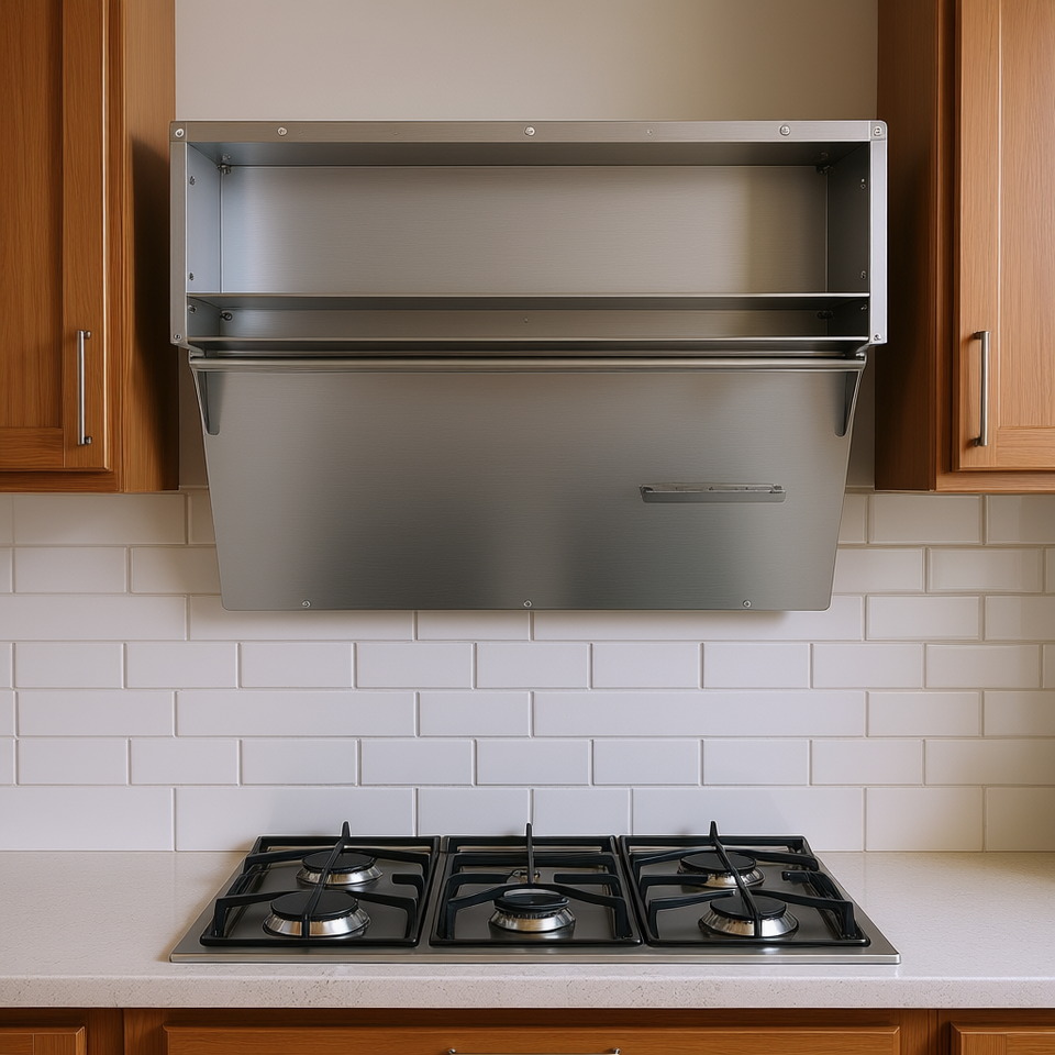 Protezione murale per cappa da cucina in acciaio inossidabile 36 x 29,5 pollici con ripiano portaoggetti integrato e appendioggetti, paraschizzi da cucina