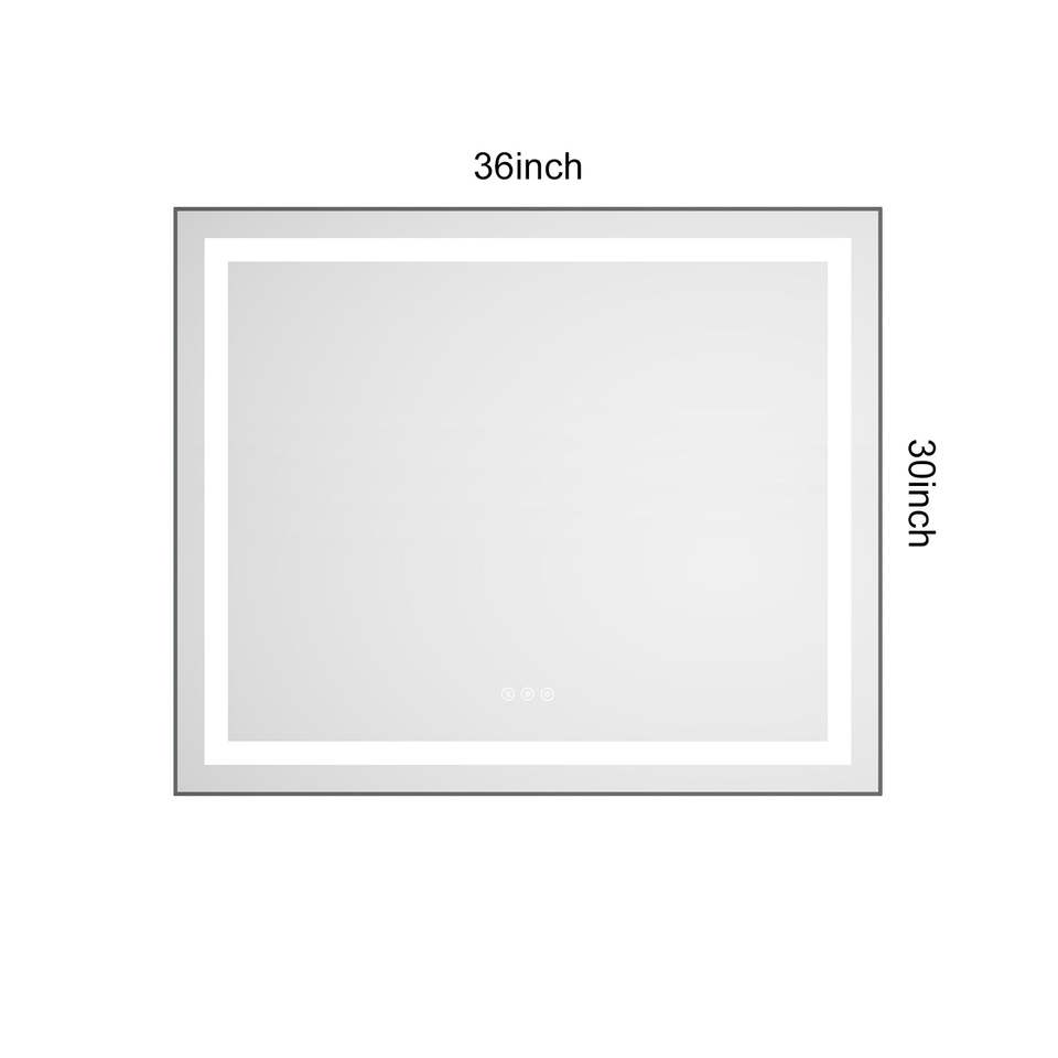 36 X 30 Inch LED Bathroom Vanity Mirror Wall Mounted Aluminum Frame Front & Backlight Anti-Fog Memory 3 Colors Stepless Dimmable