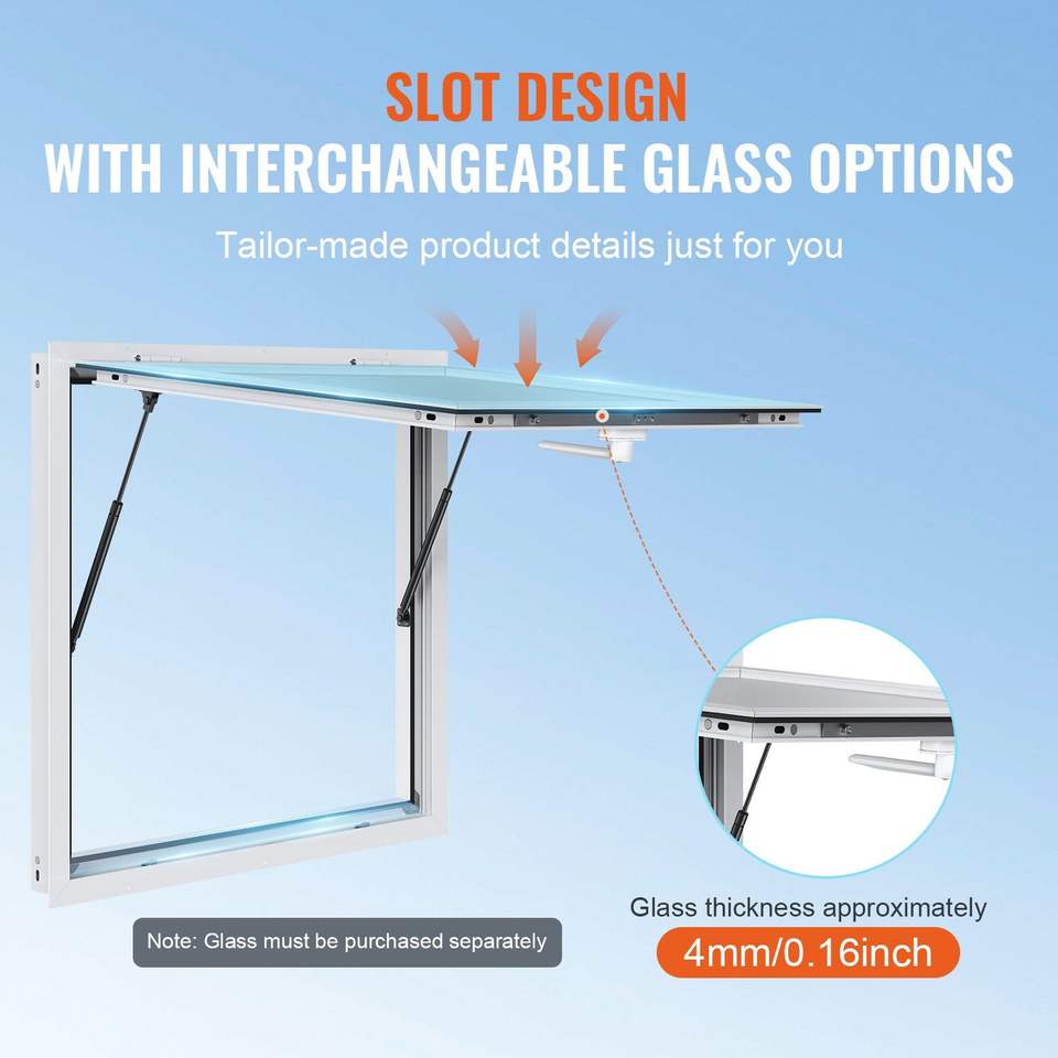 Finestra di Servizio in Alluminio 36''x36'' per Food Truck con Gancio per Tenda, Apertura a 85 Gradi