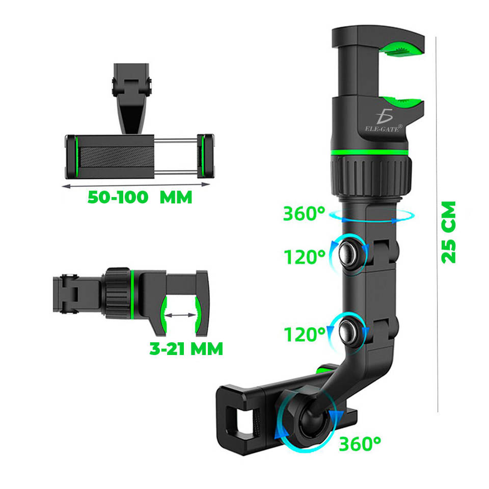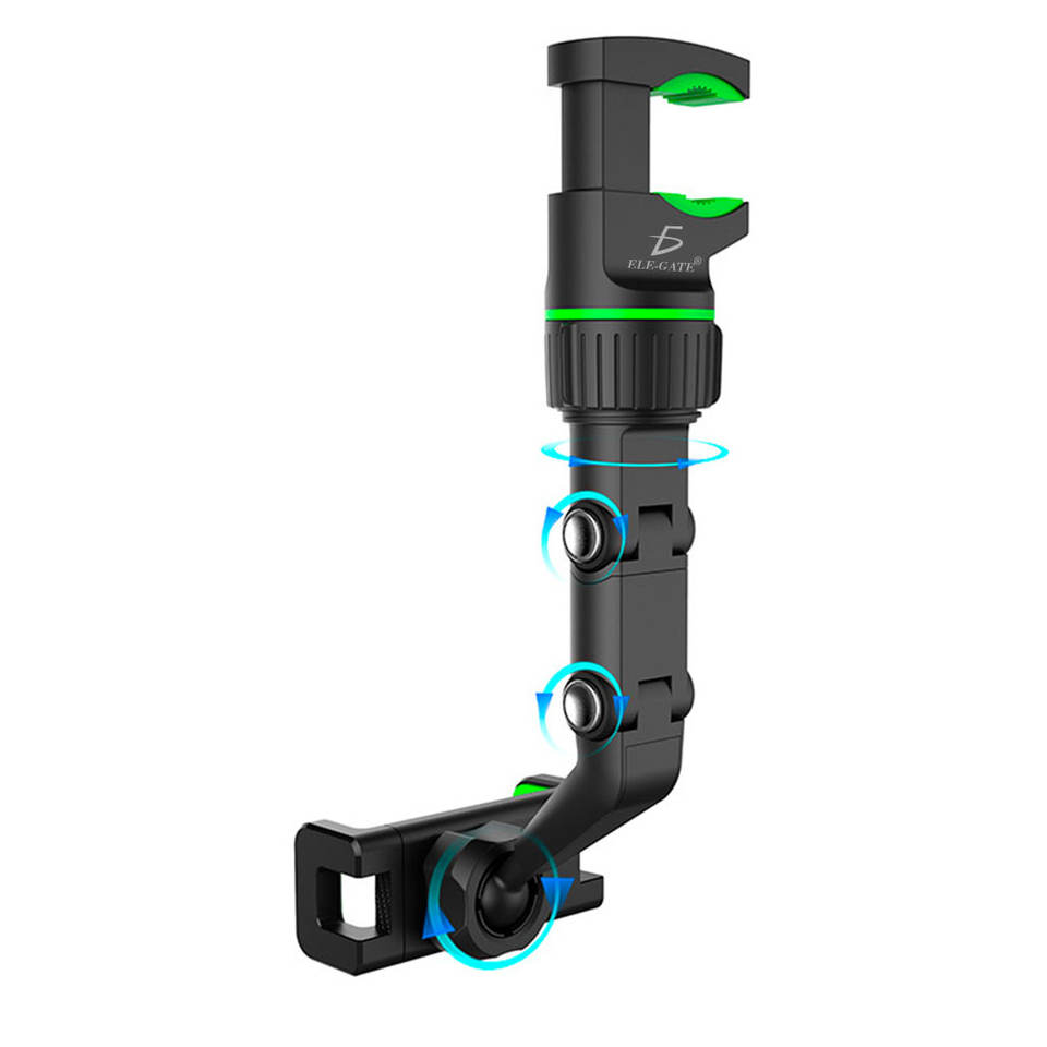 Supporto per cellulare da auto con montaggio a specchietto retrovisore a 360°, clip in plastica ABS, combinazione magnetica per GPS e posizionamento sul cruscotto.