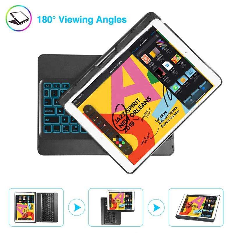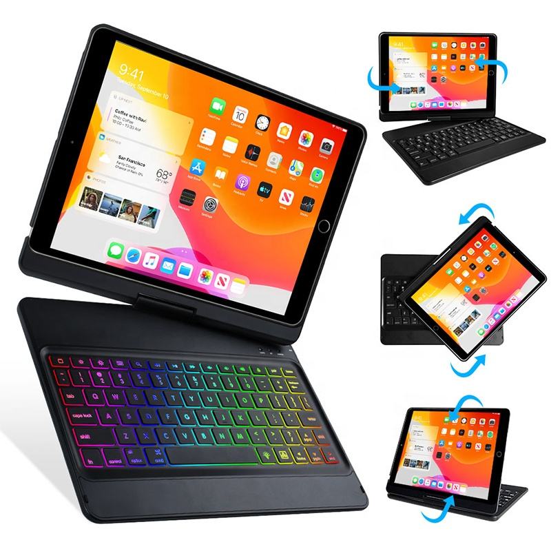 Custodia per Tablet portatile rotante a 360 gradi per iPad 7th accessori custodia per tastiera Wireless BT con portamatite da 10.2 pollici