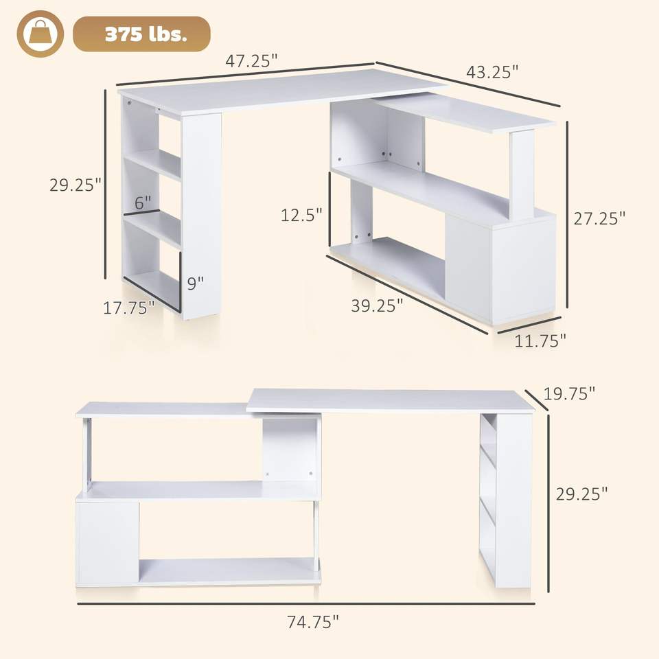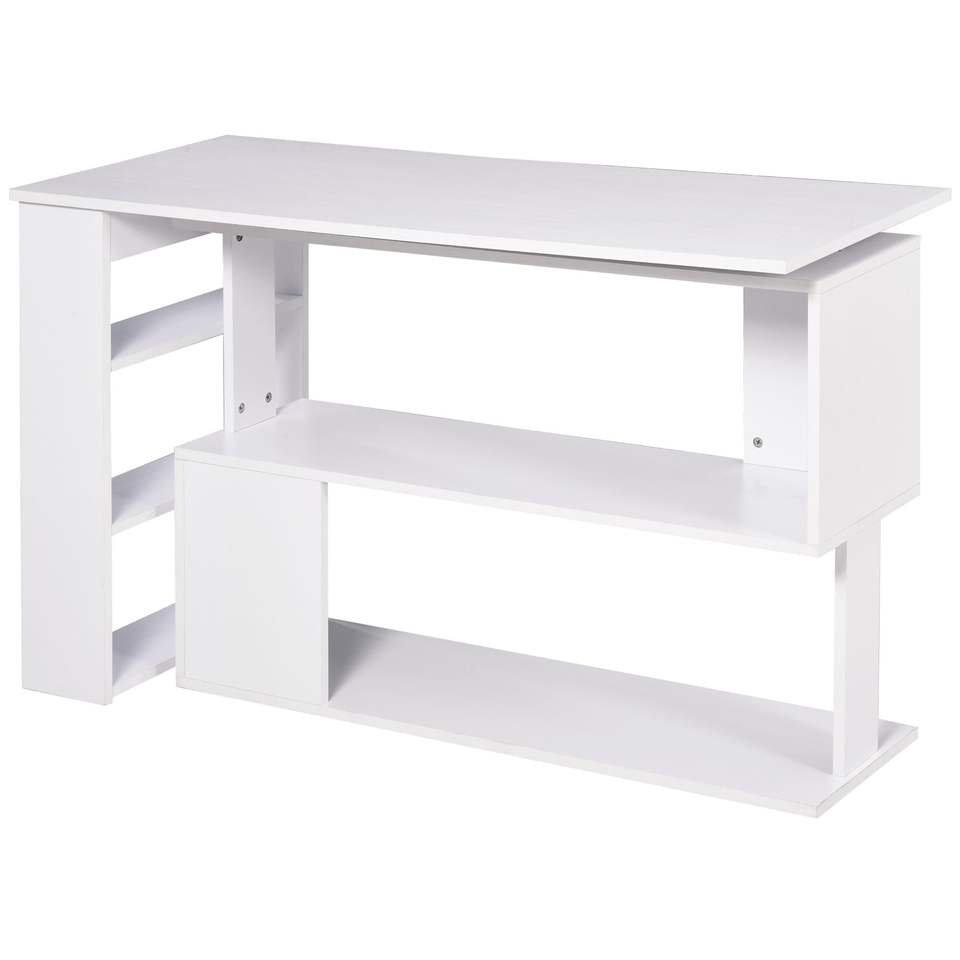 Scrivania Angolare a L Girevole a 360 Gradi Bianca con Scaffali Portaoggetti per Ufficio e Casa, Ideale per Scrivere e Lavorare