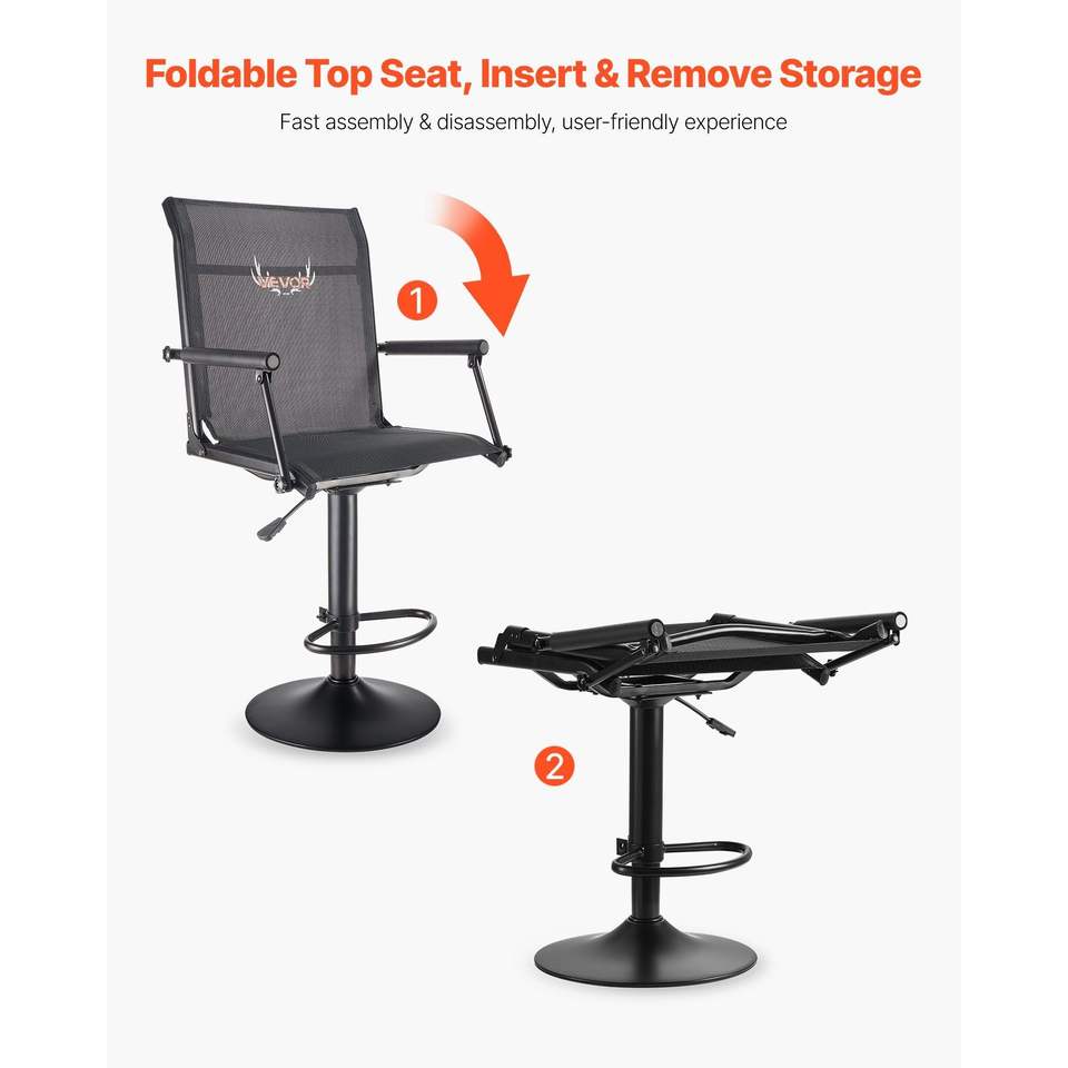 Sedia da Caccia Girevole a 360 Gradi Silenziosa e Leggera con Braccioli Imbottiti, Telaio in Acciaio Resistente, Sedile da Terra per Capanni di Caccia