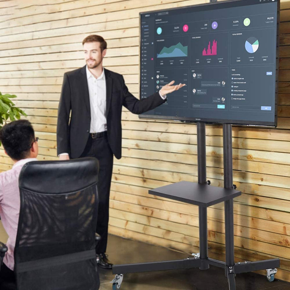 360 Degree Swivel TV Lift Steel and Plasma Mobile Stand with Wheels for Curved Flat Screen TVs Motorized Office TV Floor Stand