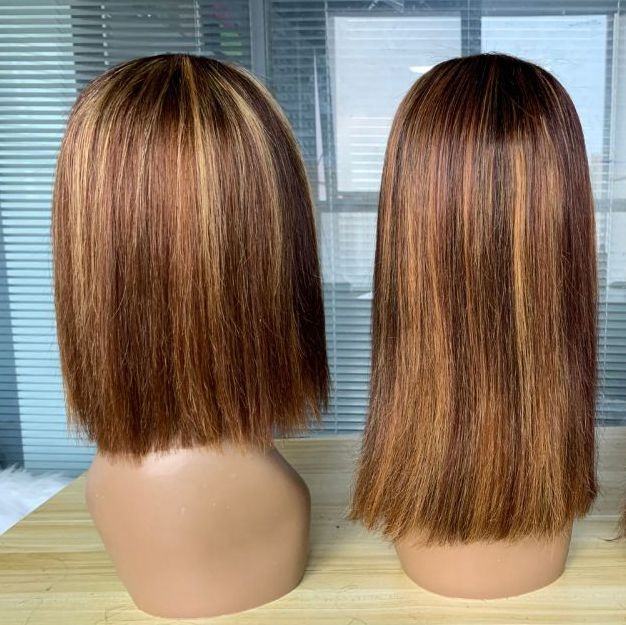 Parrucche corte di bob della parte anteriore del pizzo della treccia 13x4 13x6 per le donne di colore 360 capelli umani castano chiaro trasparenti 26 pollici 200 densità bionda 13x4