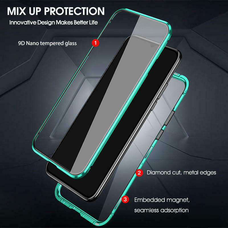 360 copertura magnetica della cassa di vetro temperato anteriore & posteriore per Xiaomi Redmi Note 8T Pro Mi 10 Note 10