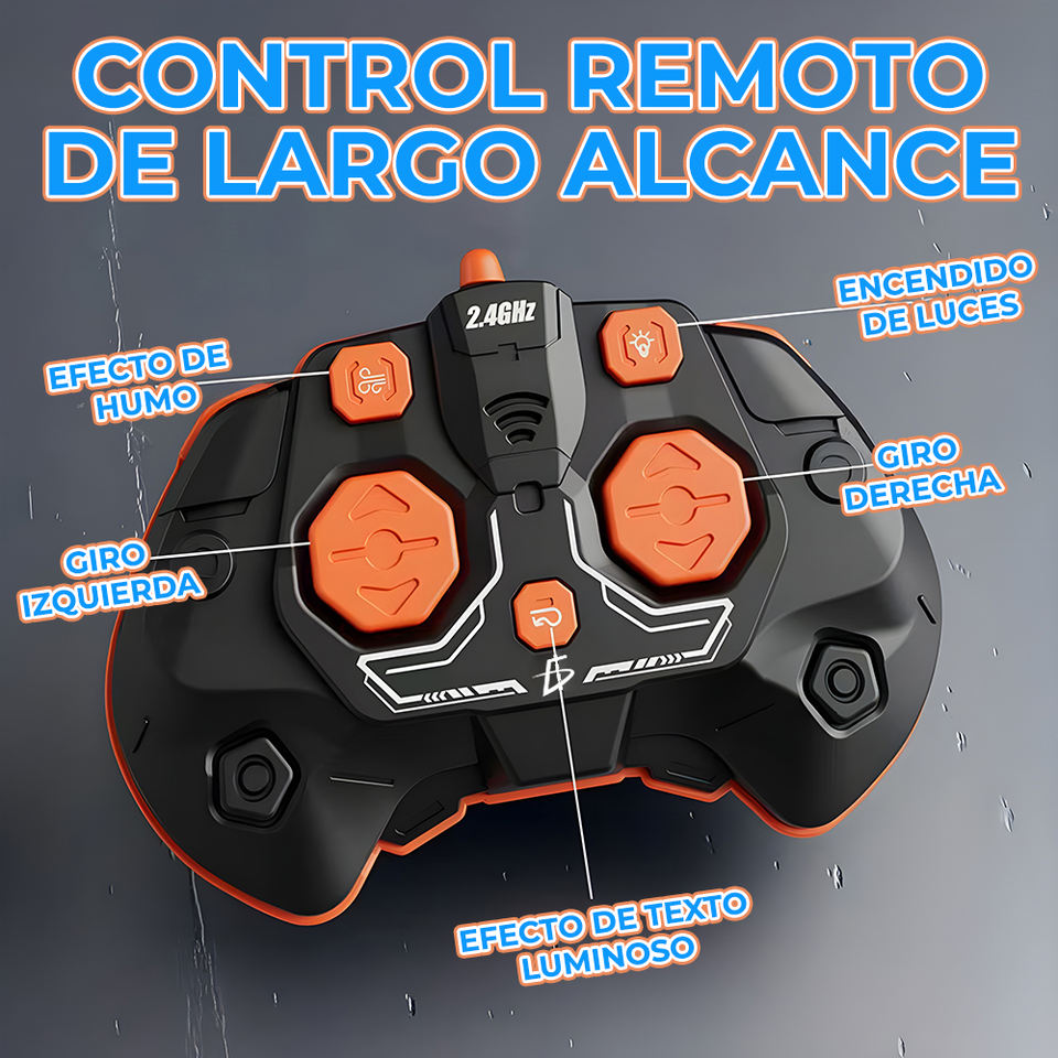 Auto Telecomandata 360° con Luci LED e Batteria Ricaricabile 2.4G, Realizzata in Plastica Resistente, Funzione Spray Inclusa