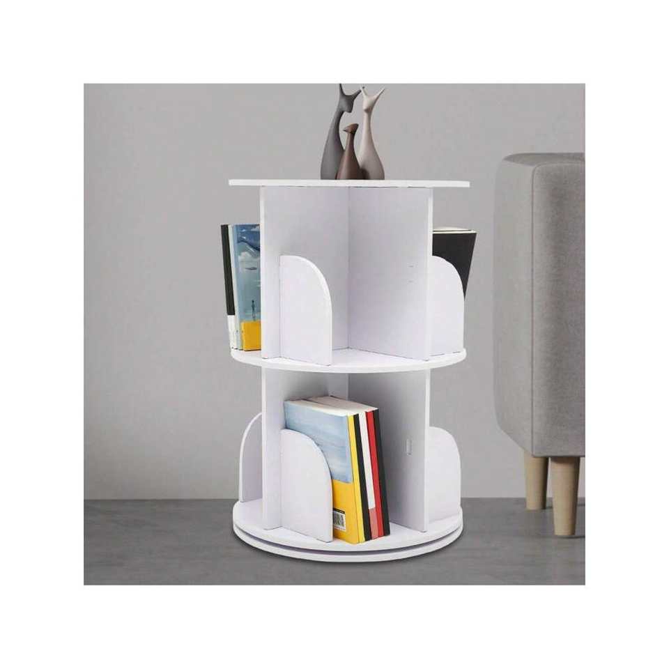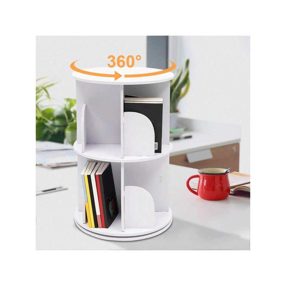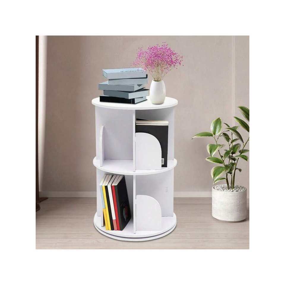 360° Rotating Multi-Functional Bookshelf Organizer MDF Wood Floor Standing Bookcase Storage Rack with Rotating Display