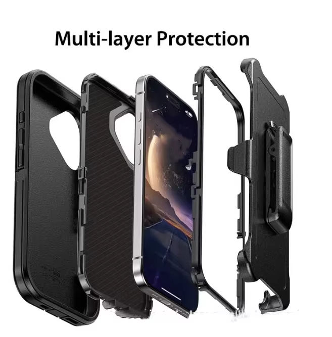 Custodia Protettiva Antiurto 360° con Clip da Cintura Nera per iPhone 15 Pro Max, Cover per iPhone 17 16 15 14 13 12 11 Pro Max