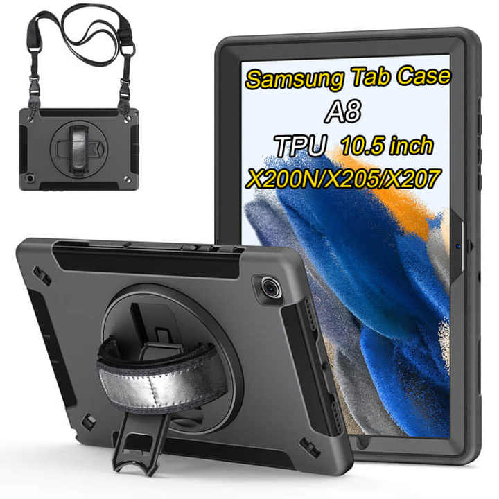 360 ° Custodia Robusta per Tablet Samsung Galaxy A8 10.5 Pollici SM-X200 SM-X205 SM-X207 con Cinghia Regolabile e Flessibile